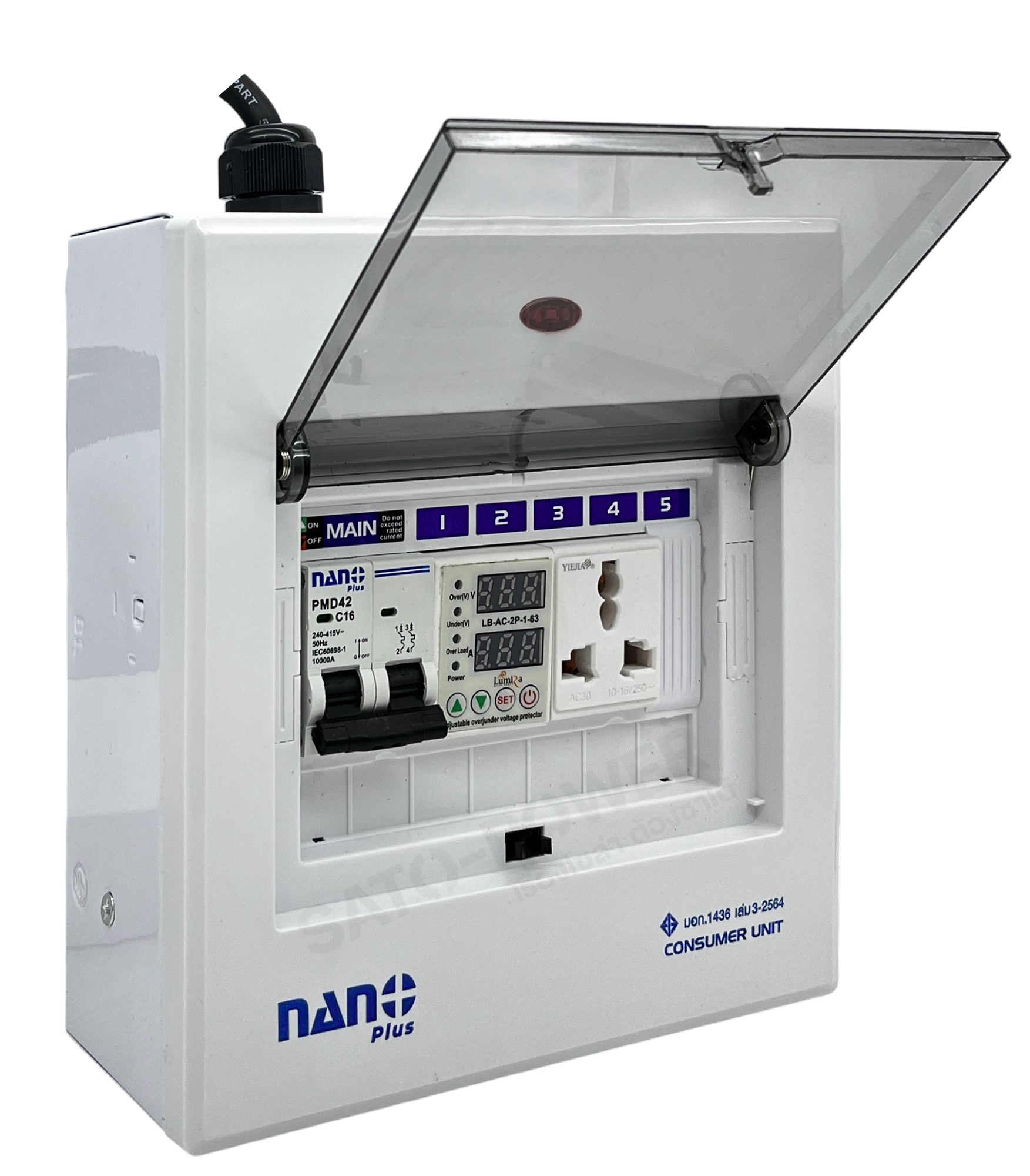 | Part No | Product Description | Box Color | Plug Color | Length (m.) VCT 3C*2.5 mm2 | Unit Price (THB) | | BWP-7482N101*x-3*y | กล่องกันน้ำปลั๊ก 2 ช่อง+เบรกเกอร์ ฝาทึบ | *x = ขาว(W) , เทา(G) | *y = ดำ(B)