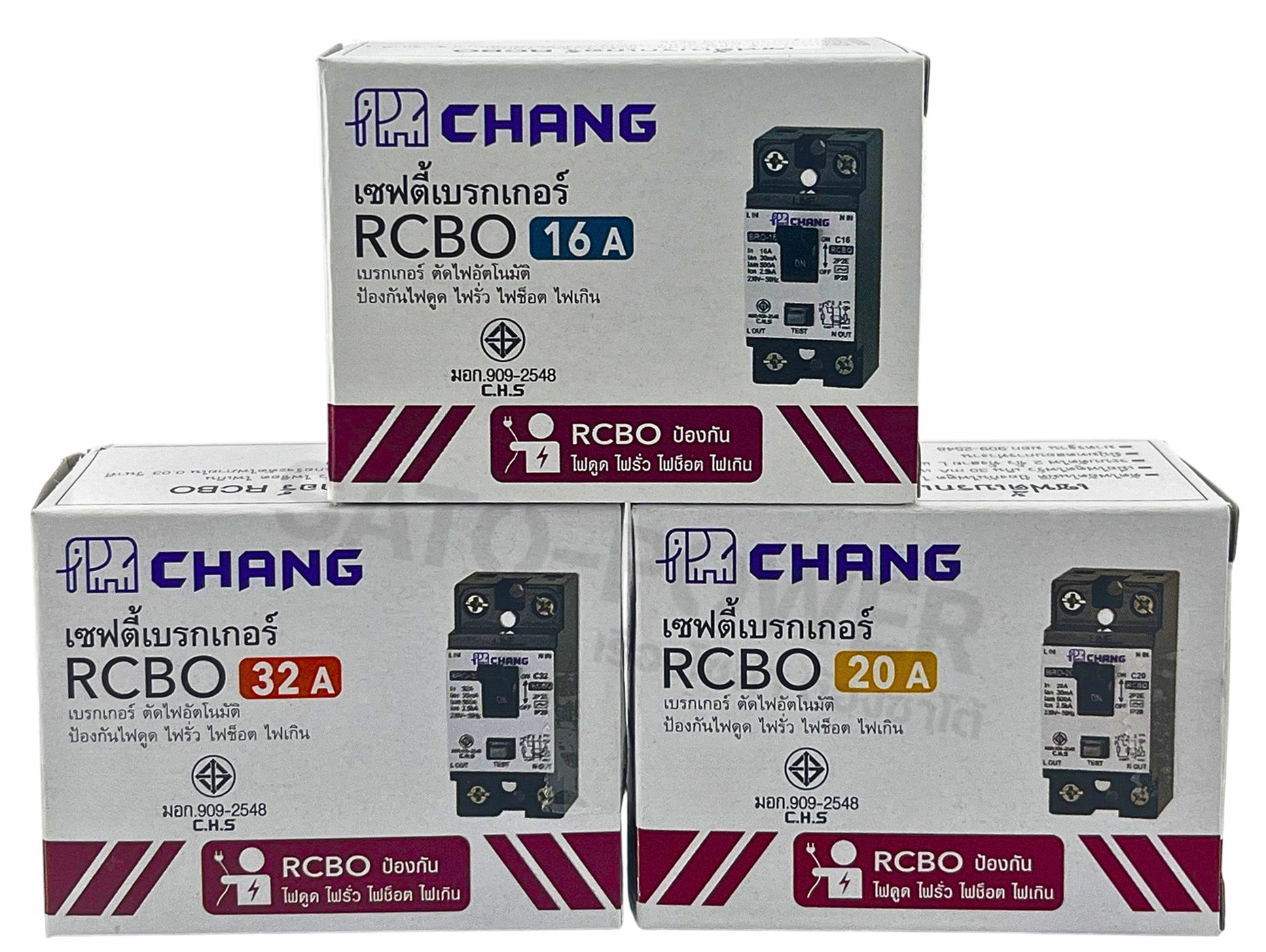 | | * ป้องกัน ไฟดูด ไฟรั่ว ไฟช็อต ไฟเกิน | | Part No | Product Description | Current Rate | Unit Price (THB) | | CHANG-RCBO2P-16 | RCBO AC 2P Circuit Breaker | 16A | 450.00 330.00 ราคาส่งกรุณาติดต่อ | | CHANG-RCBO2P-20 | RCBO AC 2P Circuit Breaker | 20A | | CHANG-RCBO2P-32 | RCBO AC 2P Circuit Breaker | 32A |