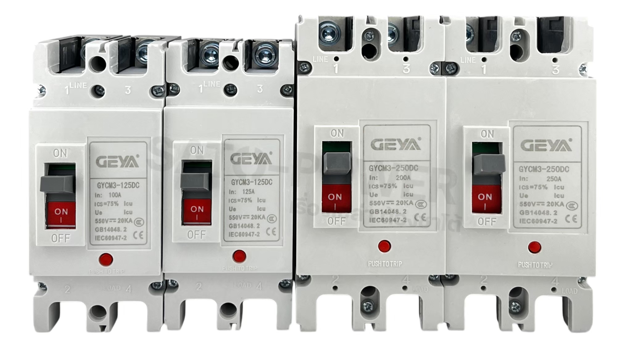 | | Part No | Product Description | No. of pole | Current (A) | Rated Voltage (Vdc) | Unit Price (THB) | GYCM3-DC-2P | เบรกเกอร์ MCCB DC | 2P | 100 125 | 550V | 1,250.00 950.00 ราคาส่งกรุณาติดต่อ | GYCM3-DC-2P | เบรกเกอร์ MCCB DC | 2P | 200 250 | 1,500.00 1,150.00 ราคาส่งกรุณาติดต่อ |